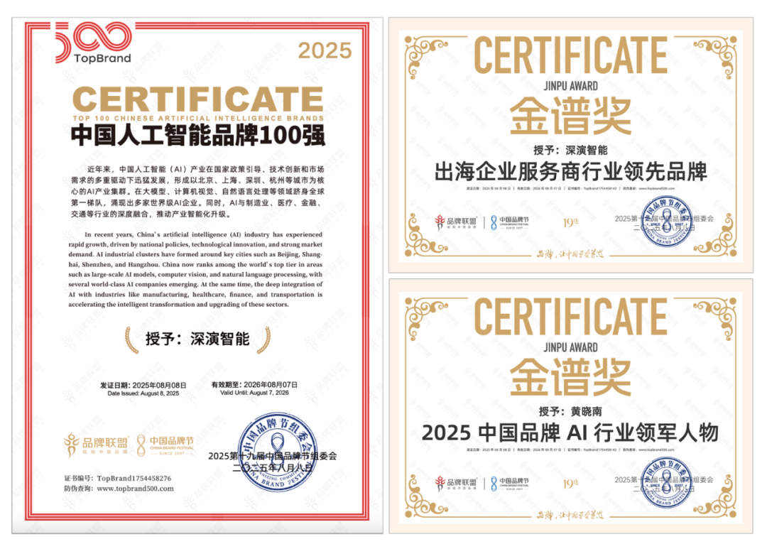 8 月 9 日晚举办的荣耀盛典上,ss3333盛世集团智能凭借深厚的 AI 技术实力与出色专业的出海服务能力,斩获 “2025 中国品牌节金谱奖・出海企业服务商行业领先品牌”“2025 中国人工智能 100 强” 等多项重磅奖项。其创始人兼 CEO 黄晓南荣膺 “2025 中国品牌 AI 行业领军人物” 称号。未来,ss3333盛世集团智能将紧跟时代步伐,持续聚焦 “AI 与出海”—— 这一方向高度契合时代脉搏与中国品牌发展的迫切需求,旨在汇聚智慧力量破解发展阻碍,为中国品牌赋能。
